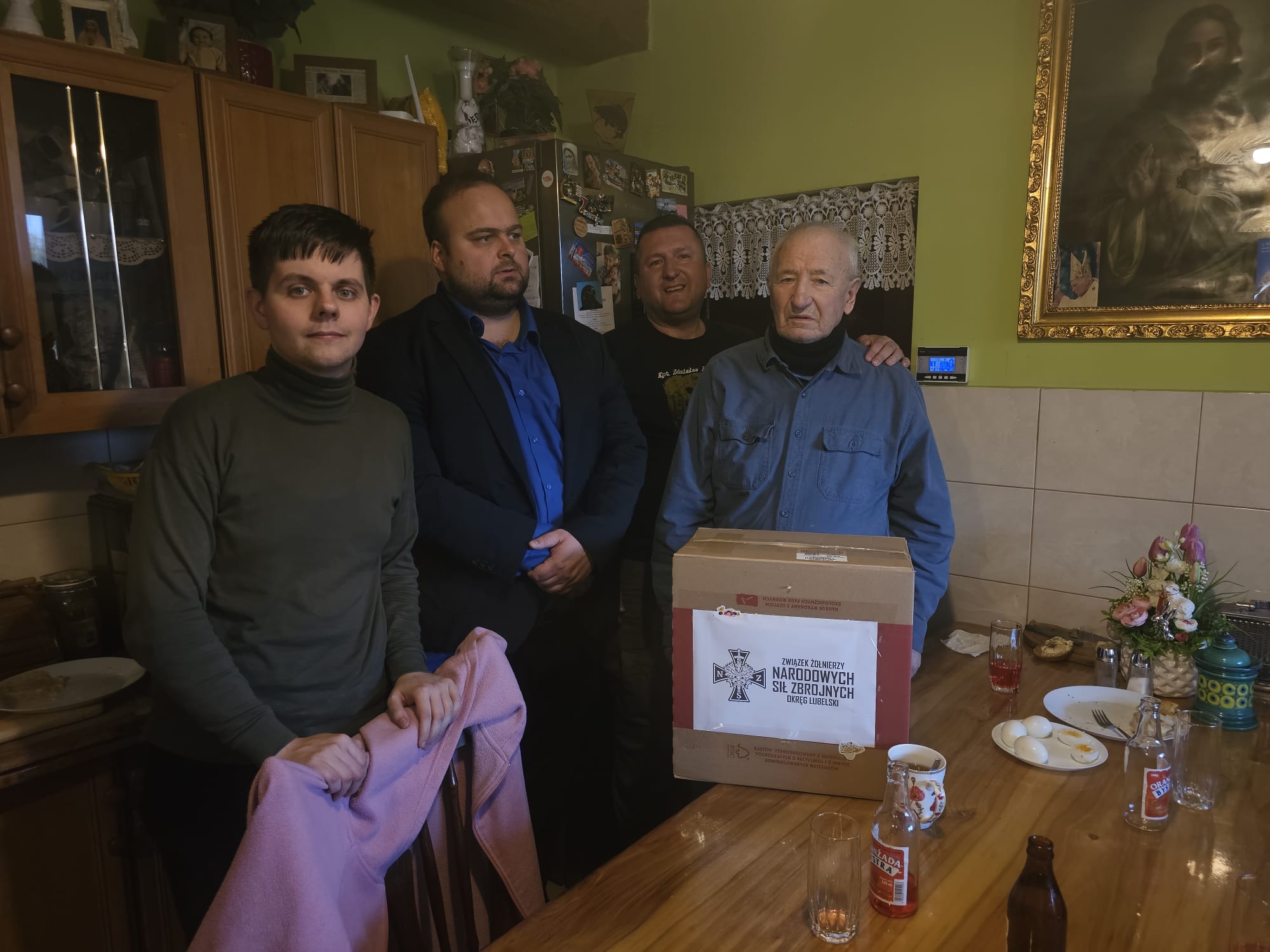 W okresie świątecznym prezes Wojciech Rowiński z wolontariuszami Fundacji, odwiedzili kombatantów na Lubelszczyźnie. Paczka to w zasadzie pretekst do tych odwiedzin. Najważniejsze są kontakt i pamięć o ich postawie w okresie ciężkiej próby okupacji niemieckiej i zniewoleniu komunistycznemu. Wspólnie z młodzieżą z województwa lubelskiego wypisaliśmy kartki z życzeniami świątecznym wyrażając weteranom podziękowanie za niezłomną postawę w okresie ich konspiracji. Działanie takie jest przykładem zaangażowania w podtrzymywanie i upowszechnianie tradycji narodowej, pielęgnowanie polskości oraz rozwój świadomości obywatelskiej i kulturowej. To nie tylko piękny gest wobec weteranów, ale również okazja do budowania więzi między pokoleniami. Dzięki zaangażowaniu młodzieży szkolnej, wolontariuszy oraz organizacji patriotycznych, kombatanci mogą poczuć, że ich historia i poświęcenie są doceniane przez młodsze pokolenia. Zachęcamy do wsparcia naszych akcji.